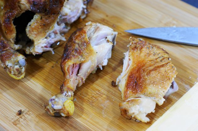 - Bend the leg back until the joint pops, then slice through the joint to remove.